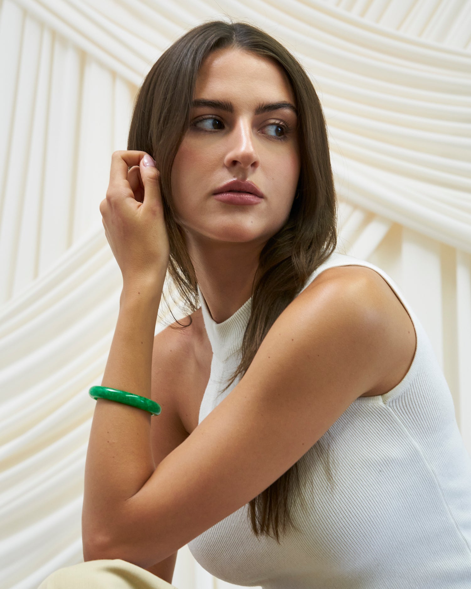 There’s something transformative about slipping on a jade bangle. Suddenly, the little details, the way your hand moves, the way you catch your reflection, feel more graceful. It’s not loud or showy. It’s the kind of elegance that whispers, that lingers, that makes you feel composed in a way nothing else does.